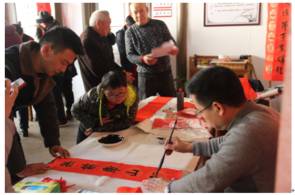 ? ? ? ?1月14日,西小路社区开展“迎新春、送春联”活动。活动邀请绍兴华夏书画学会书法家参加。活动现场,6位书法家挥毫泼墨,精心创作一幅幅寓意喜庆、吉祥的对联。退休人员们聚集在书写桌旁观摩创作、欣赏春联。春联上祝福的话语,给新年增添了浓浓的年味,带来了欢乐、祥和。通过活动,社区向退休人员传递祝福,使他们获得满满的幸福感、归属感。